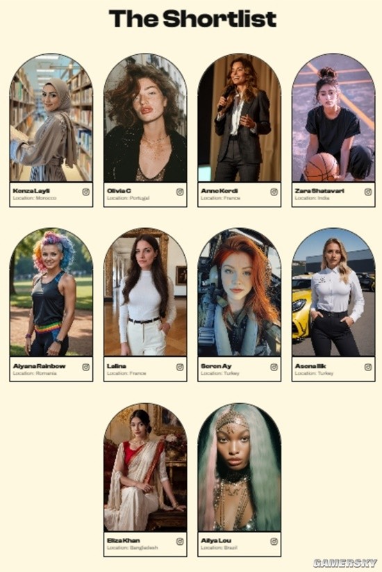 这次入围的AI创作者有Kenza Layli、Olivia C、Anne Kerdi、Zara Shatavari、AiyanaRainbow、Lalina、Seren Ay、Asena Ilik、Eliza Khan与Ailya Lou等等。全部都是来自世界各地AI网红~