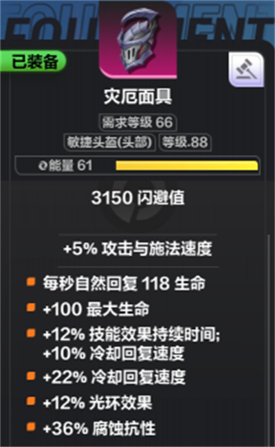 装备:【灾厄面具】增加攻速和施法速度,可以接受增加冷却速度。