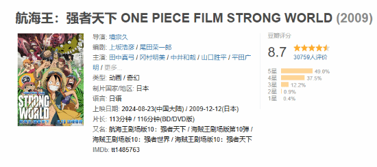 今日东映动画官方宣布,2009年曾在日本上映的《海贼王》动画电影《航海王:强者天下》现已正式在内地定档,8月23日上映。目前本作在豆瓣的评分为8.7分,官方同时放出了定档预告与定档海报,我们一起来欣赏一下。