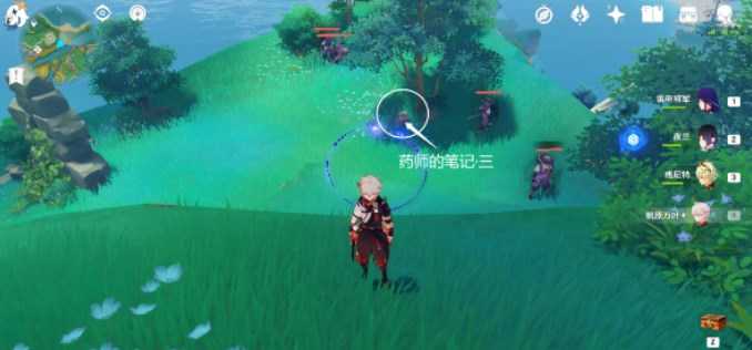 清理「药师的笔记·三」附近的野伏,在树下石堆上获得「药师的笔记·三」