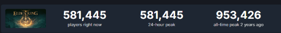 《艾尔登法环:黄金树幽影》现已上线,Steam当前共收录2381篇玩家测评,好评率95%(好评如潮),游戏近期在线人数屡创新高,目前峰值来到58万1445人。