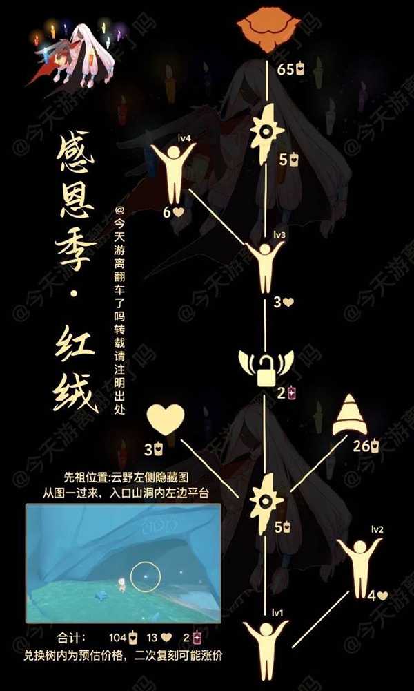 兑换全部需要玩家花费104根白蜡烛,2根红蜡烛,爱心13个,因为是三次复刻可能会在这个基础上增加。