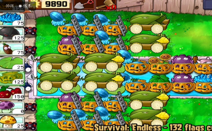 然后是最困难的梯子,可以确保后排没有伤害,防止被鬼僵尸咀嚼。因为梯子在第几轮是完全随机的,所以看看脸,在8-25轮是最合适的,因为难度适中。