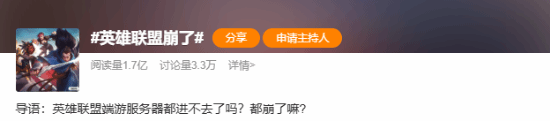 “英雄联盟崩了”登热搜 网友:什么时候能修好?