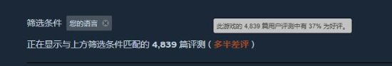 当将评测语言限定为中文时,情况更为严峻。中文玩家对该DLC的评价为多半差评,4839篇评测中好评率仅为37%。日语评价为褒贬不一(好评率65%);英语评价为特别好评(83%)。