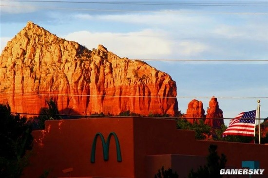 该麦当劳位于美国亚利桑那州的塞多纳,塞多纳以自然景观闻名,尤其是壮阔的红色岩石地貌。