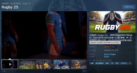 《橄榄球25》现已以抢先体验的形式在Steam平台发售,预计今年晚些时间推出最终版本。截止发稿,本作已收录56篇玩家评价,好评率仅25%(多半差评)。国区售价233元。
