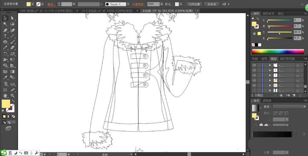继续画出女生的上衣,我们重点绘制袖口与领口的毛发的封闭路径。