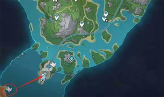 3、沙漠地区的右上角有一个浪船锚点,驾驶帆船过去开启枫丹的第一个七天神像。