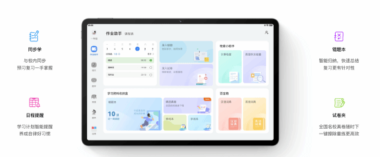 华为MatePad SE教育中心App也全新升级,例如“儿童乐园”,汇聚了优质的儿童启蒙内容,专为家庭学习设计。在儿童教育场景下,教育中心App的学习桌面则为用户打造了一个专注的学习环境;此外,AI课程表、错题本、汉语词典、英语词典等学习工具,都能帮助孩子更便捷地进行自主学习和自我提升;还提供了全面的家长管控功能等。