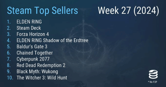 Steam周销榜:老头环登顶热度不减 地平线4冲进前三