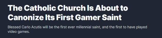据IGN报道,梵蒂冈宣布将封圣意大利少年Carlo Acutis,他将成为天主教千禧年代的第一位圣人,同时也是第一位玩电子游戏的圣人。