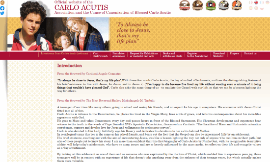 Carlo Acutis于1991年在伦敦出生,不久后随家人移居意大利米兰。他在天主教信仰的熏陶下长大,经常为无家可归的人提供志愿服务,清理附近的垃圾,在当地教堂工作,并以其他方式行善。Carlo Acutis于2006年因白血病离世,享年15岁。除了其他爱好和兴趣之外,他生前非常喜欢游玩《光环》《超级马里奥》以及《宝可梦》。