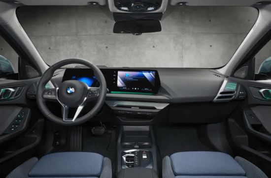 座舱方面,全新宝马1系中控台装配10.25英寸全液晶仪表和10.7英寸液晶中控屏构成的一体式双联屏,搭载OS 9车机系统,支持Quickselect快捷屏幕功能。