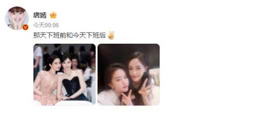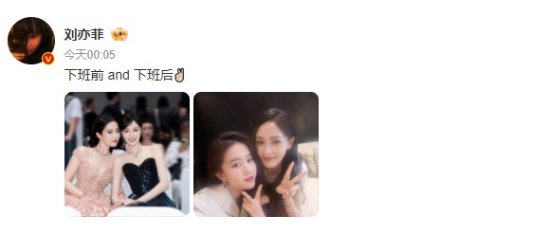 7月2日,刘亦菲在个人社交账号晒出了和唐嫣的“下班前”和“下班后”合照。唐嫣也在同时发布了同样的合照。