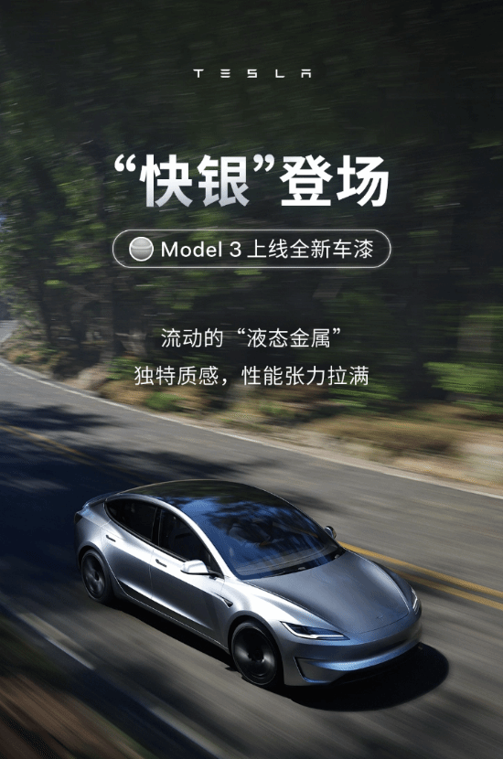 特斯拉Model 3上线“快银”车漆:选配价格1.2万元