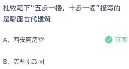 问题二、杜牧笔下“五步一楼,十步一阁”描写的是哪座古代建筑?