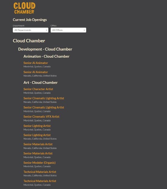 “2K Cloud Chamber的《生化奇兵》团队正在加紧开发!我们有许多职位空缺,涉及艺术、动画、工程、设计、叙事和制作等多个领域。我们正在开发一个非常棒的项目,而且我们的工作室便于远程办公。”页面显示,Cloud Chamber目前有30个职位空缺,涵盖高级AI动画师、建模师、渲染程序员等等。