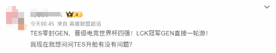 "TES零封GEN"引热议 网友:就这状态 必须支持升舱!