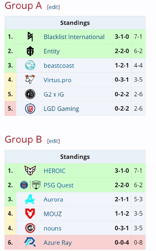 本次入围赛阶段采用的是A B双小组,每组6支队伍BO2双循环的赛制。每个小组的前三名直接晋级,第六名直接淘汰,每组第四、五则将交叉BO3对决,决出最后两个小组赛名额。