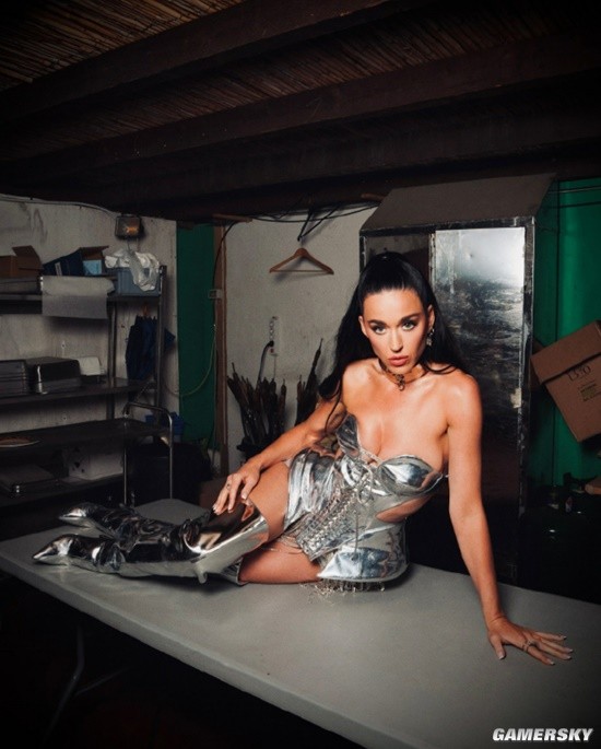 她还在脖子上挂了一个沉重的银色项圈,耳环挂在她的耳垂上,整个人blingbling的,闪耀且性感。