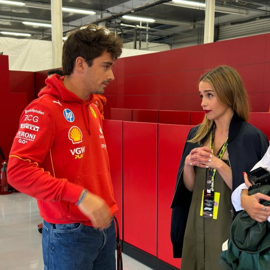 "龙妈"造访法拉利车队:与勒克莱尔、赛恩斯同框