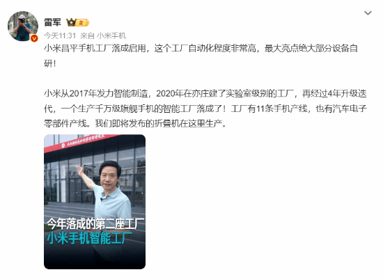 小米昌平手机工厂落成 雷军:大家以后叫我雷厂长