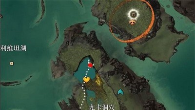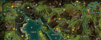 2.从上图可以看出,激战2凯席斯山需要玩家探索的地方基本遍布地图的每个角落。总的来说,这张地图比较友好,没有难找的地方。唯一坑爹的应该是炼金术师的探索点。搜索入口在(下图)红点的水下。下游会看到一个洞,两边都有黄叶,沿着洞游就能到达搜索点。
