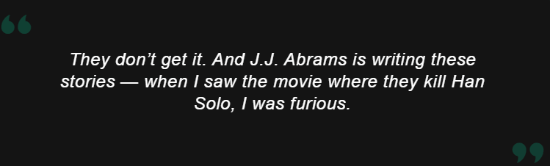 她承认乔治-卢卡斯是一个伟大的导演,但她并不喜欢前传三部曲的选角和整体故事。此外,玛西娅还认为影片过分依赖CGI,这也令她相当不满。同时,她还批评了将续集的重点转移到女性角色上的决定,并称整个故事情节非常糟糕。