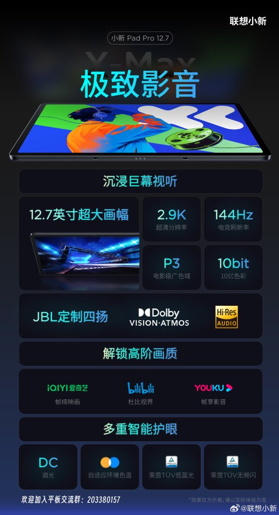 联想全新小新Pad Pro 12.7平板将于本月发布,官方近期公布了该平板影音方面的细节信息。