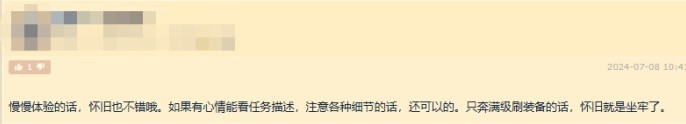 对于怀旧服玩家来说,更优质的画面,更“现代化”的游戏设计语言让正式服具有十足的吸引力,而对于正式服玩家来说,在更快的节奏更密集的内容玩累的时候,回到沉浸感更强,更加悠闲,乃至更有挑战性的怀旧服,也不失为转化心情的好方法。