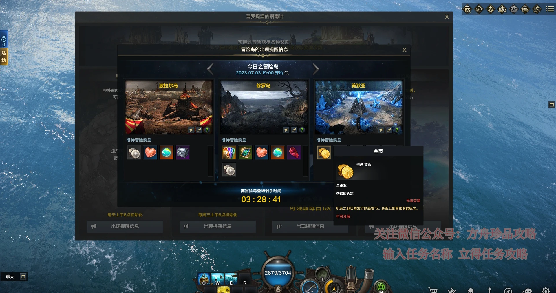 冒险岛:参与限时开放的冒险岛活动可获得金币,可以在普罗提温的指南针栏目里面查看今日之冒险岛开放时间