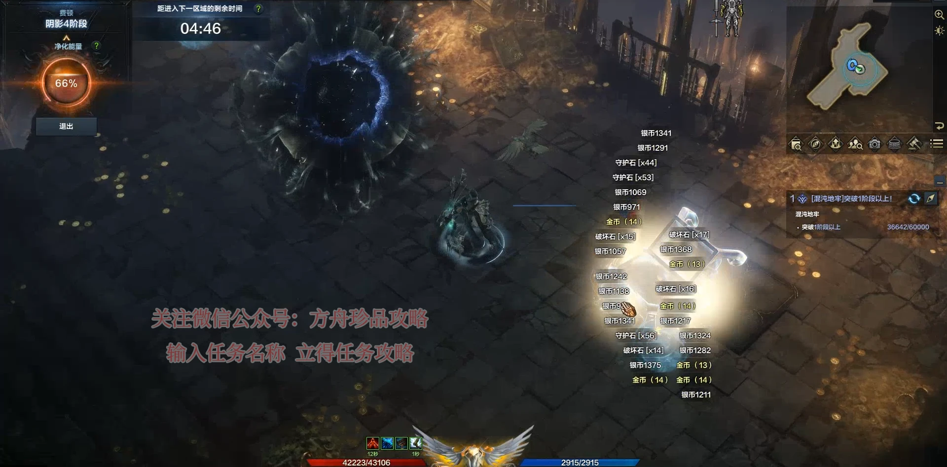 混沌地牢:在击败混沌地牢第二层区域的首领时,有一定概率开启金色或紫色的混沌地牢密室入口,进入金色入口之后会遭遇一个宝箱怪,进入紫色入口会遭遇区域首领,击败怪物后掉落精炼材料以及金币,掉落的数量是根据所进入的地牢难度变化