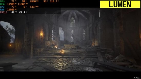 据外媒dsogaming报道,油管UP主Cycu1分享了一段用虚幻引擎5运行的场景技术演示。在视频里,Cycu1使用RTX 4080显卡对游戏场景“梦幻废墟”进行了测试,由游戏里的光球指引玩家到不同的区域。结果发现,4080在此场景开启Lumen反射系统与光线追踪后的帧数仅在30至40多帧徘徊,而在不开启二者的情况下,帧数能够轻松达到100帧以上,一起来看下。