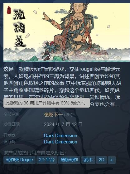 国产水墨风横板动作冒险游戏游戏《西游琉璃盏》已正式发售,本作Steam国区首发折扣价52.2元。目前Steam评价为褒贬不一。