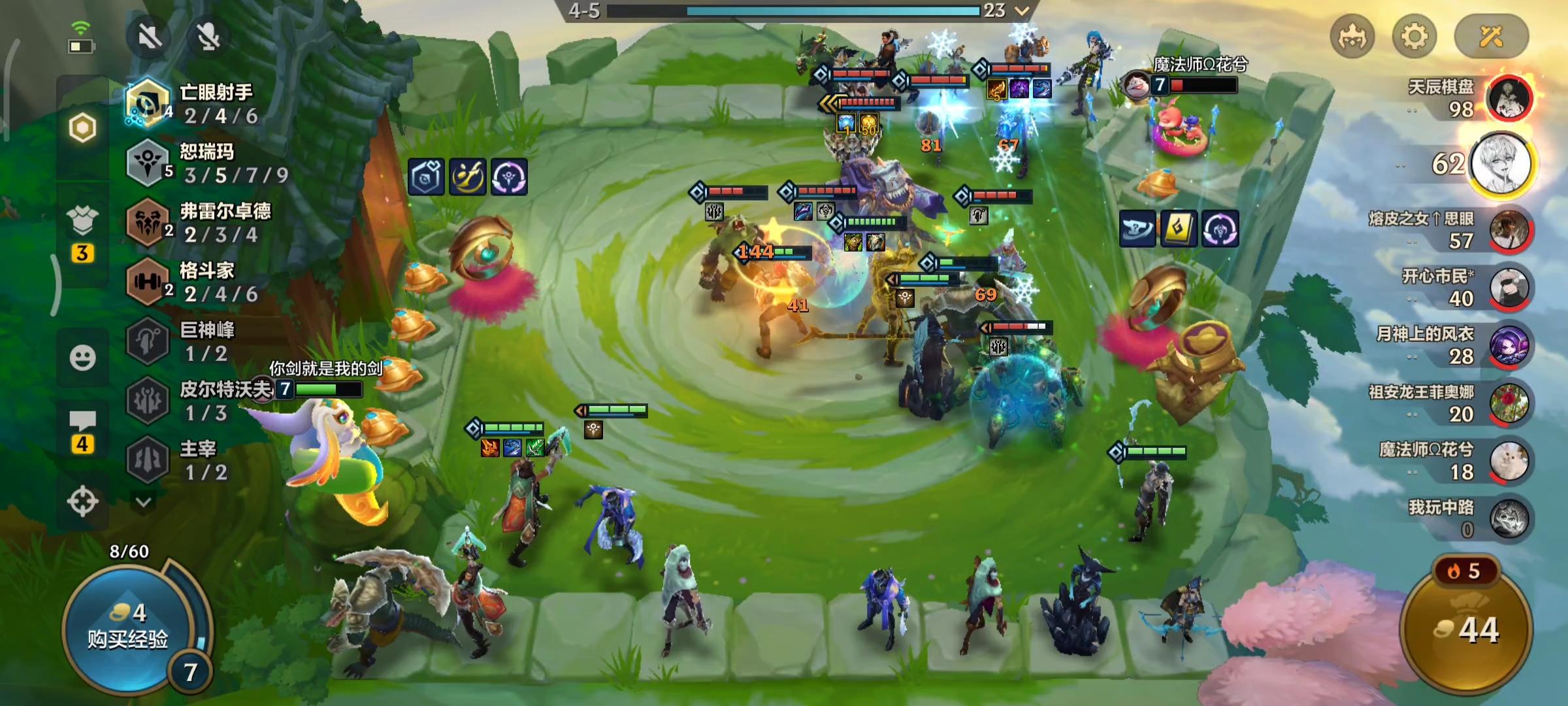 羁绊为:4盲眼射手、3恕瑞玛、2格斗家、3弗雷尔卓德