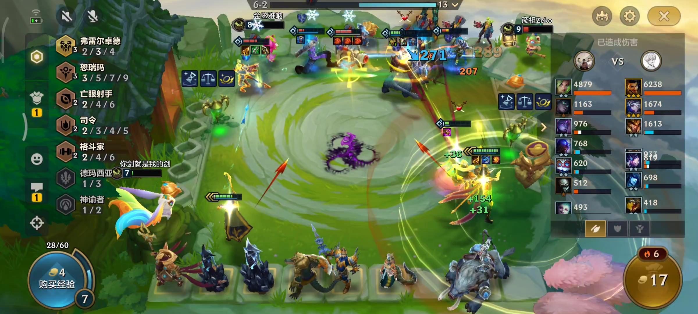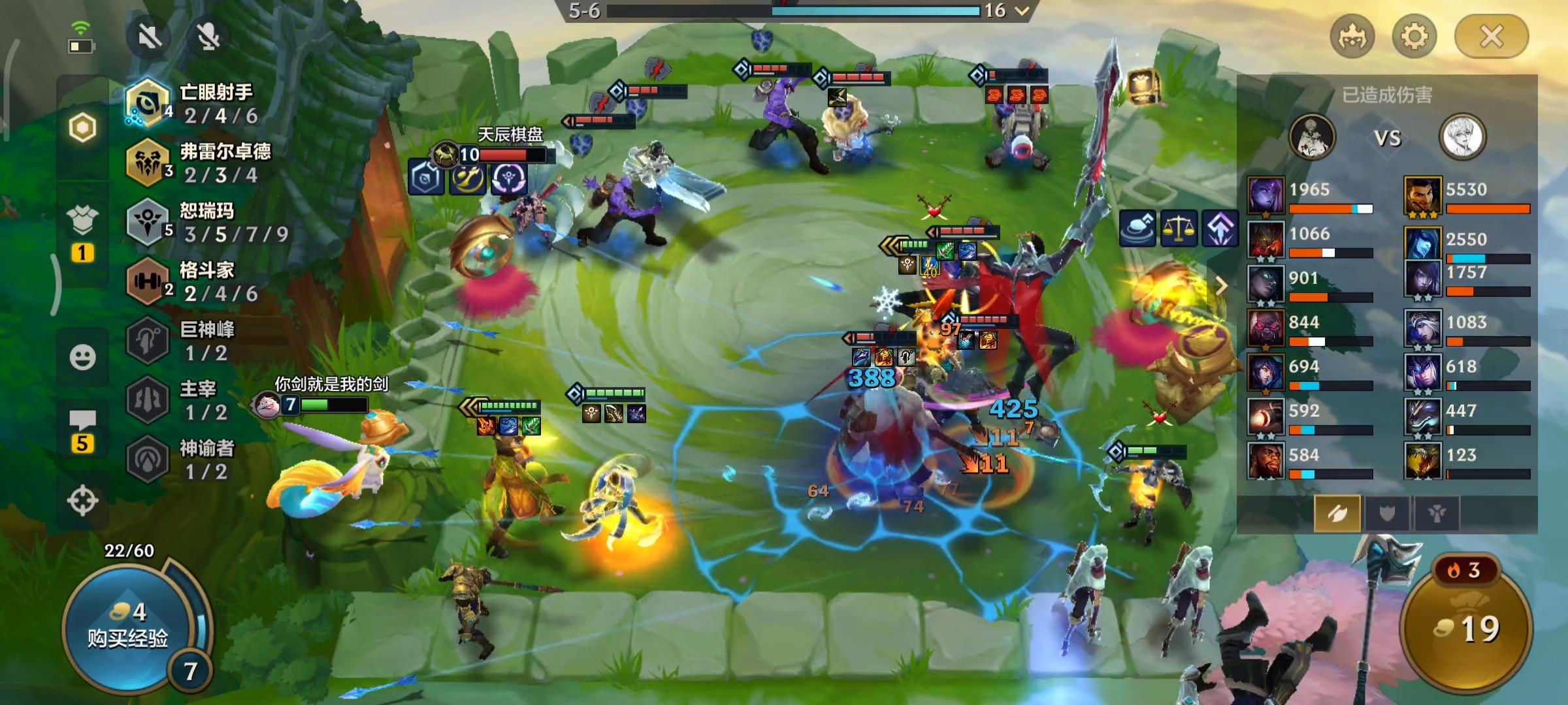 前排可以选择格斗家,毕竟,此阵容中的雷克顿就是格斗家。要是前期锁血不太顺利,六人口就可以小D一波了,最好是刷出阿克尚,6人口刷三费卡的概率有30%,与七人口相比,只差了5%而已。