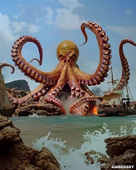 既然是1975年的好莱坞电影风格作品,那么画面的确可以很复古,其中这个大章鱼估计应该会用黏土模型,然后用停格动画的方式去做呈现吧?