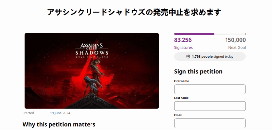“取消《刺客信条:影》!”近些日子成为游戏圈一件很热闹的事,短短几天时间,日本玩家在change.org关于此事的请愿就获得了超8万的签名人数,且正在向下一个里程碑15万靠近。面对不断上涨的趋势,这记有关“政治正确”的回旋镖似乎真的要砸到育碧自己头上了。