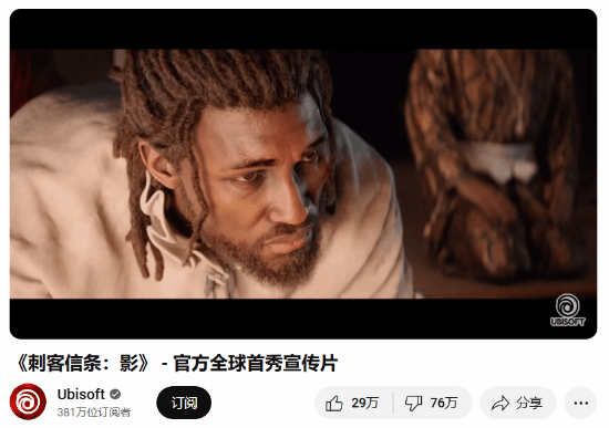 这一切事情的起源,都来自《刺客信条:影》的全球首秀宣传片,截至目前,该预告的点踩已经来到了76万,可见绝大多数的玩家对这个黑人主角“弥助”的首次亮相,多有不满。