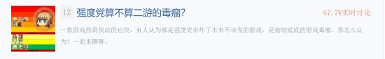 近日,“强度党算不算二游的毒瘤?”登上了百度贴吧的热搜,众多玩家在此话题下纷纷发表自己的看法。有玩家认为,强度对自己来说只是一件附属品,自己更在意的是游戏机制以及设计感、审美感等,只有在这几方面做到优秀,才能达到自己的标准。