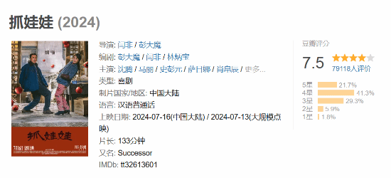 《抓娃娃》豆瓣开分7.5分:喜剧元素和情感深度并存
