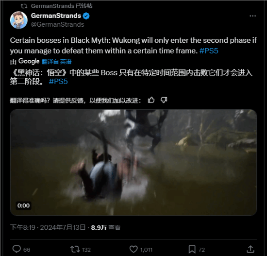 近日,推特用户GermanStrands爆料,《黑神话悟空》中的某些BOSS只有在一定时间内打败他们才能进入第二阶段。消息传出后玩家们对此褒贬不一,“黑神话悟空二阶段机制”在今日登上了微博热搜。