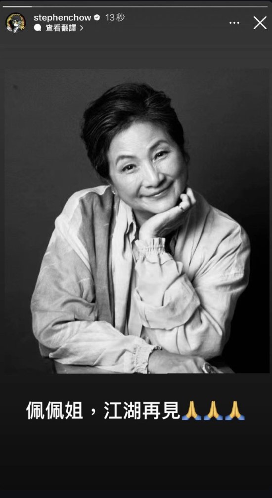周星驰在Ins发文称:“佩佩姐,江湖再见。”