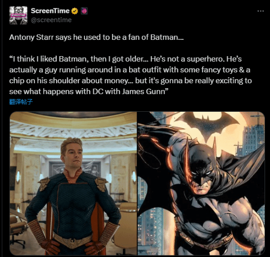 祖国人演员锐评蝙蝠侠:他不算是超级英雄