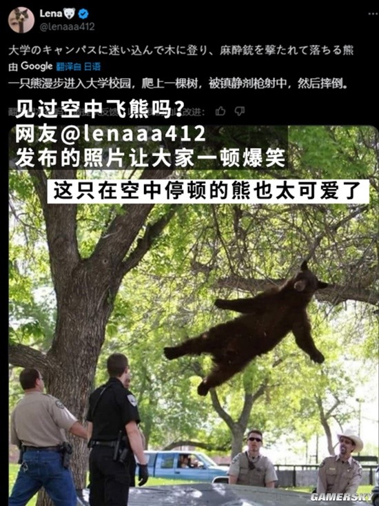 近日,网友@lenaaa412发布的“空中飞熊”让大家一顿爆笑,一只熊伸展得笔直从树上掉了下来,茫然且摆烂。