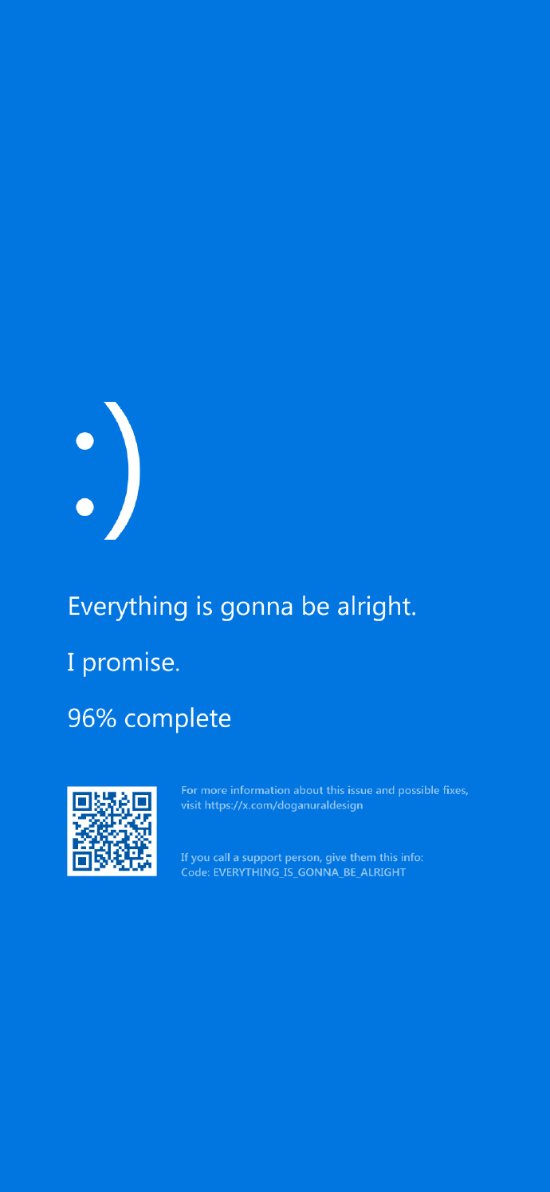 近日,X推主doganuraldesign设计了一些Windows蓝屏壁纸,适用于手机与电脑。其中部分壁纸的图案与文字很暖心,一起来看下。
