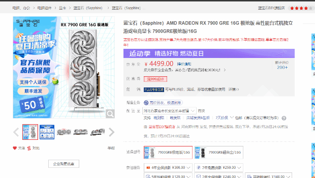 蓝宝石RX 7900 GRE 16GB D6 极地版 OC显卡当前售价为4499元,同时晒单还返50元红包,适合想要打造高颜值白色主题DIY主机,且主打4K、2K分辨率高画质游戏大作的玩家。