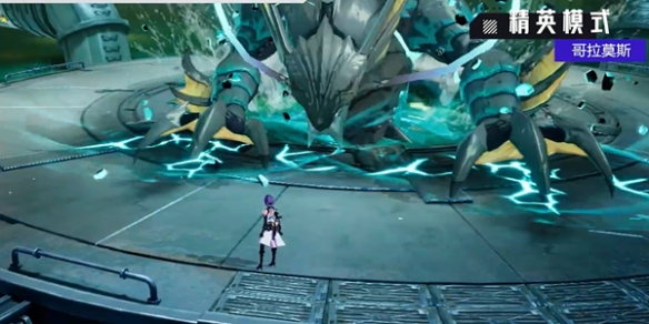 4、最危险的就是它的蓄力大招,当哥拉莫斯摆造出如下图动作时,这一刻它就是在等待蓄力充足后放大招,而此刻玩家就必须全力打断它,不然将会全屏秒杀。