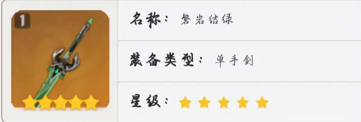 磐岩结绿同样是五星单手剑武器,被动增加生命值,且主词条提供暴击率可以让伤害更高,不过带这把武器天赋就要多加一些。